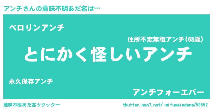 | 胡散臭い通販商品みたいなあだ名 | 『信頼と実績のペンダント…その名も「アンチ」』 |