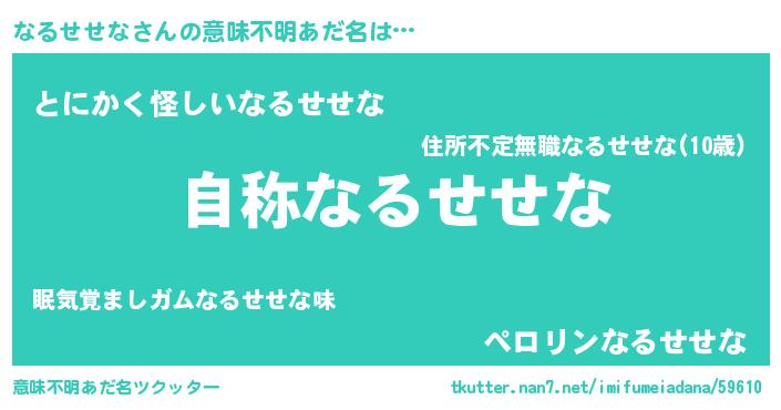 | 男性向けラノベタイトル風あだ名 | 『Re:なるせせなから始める異世界生活』 |