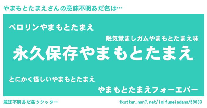 | 伝説のあだ名 | 『古文書に記された暗殺者やまもとたまえ』 |