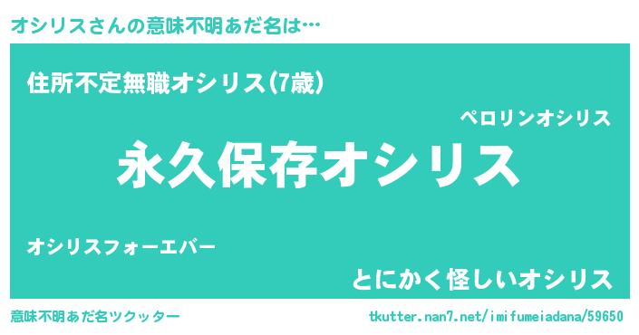 | 男性向けラノベタイトル風あだ名 | 『オシリスという概念が存在しない退屈な世界 』 |