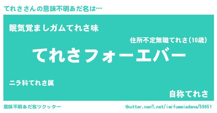 | 男性向けラノベタイトル風あだ名 | 『うちの娘の為ならば、俺はもしかしたらてれさも倒せるかもしれない。』 |