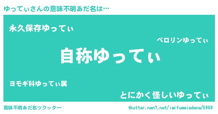 | 男性向けラノベタイトル風あだ名 | 『Re:ゆってぃから始める異世界生活』 |