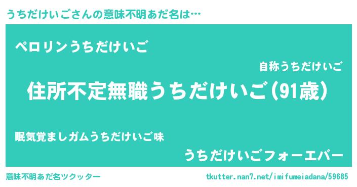 | 恥ずかしいあだ名 | 『プリティーうちだけいご』『うちっちょ』 |