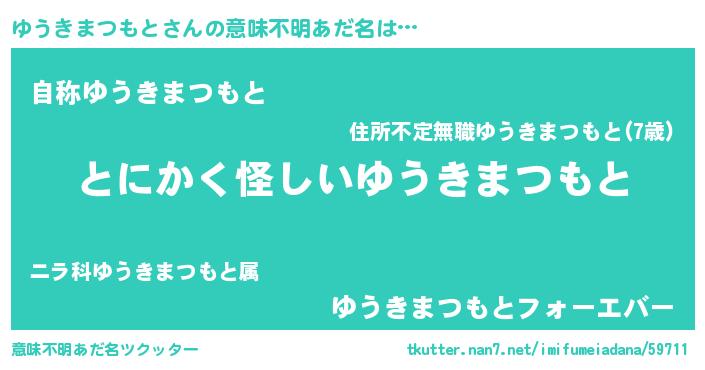 | 胡散臭い通販商品みたいなあだ名 | 『信頼と実績のサプリメント…その名も「ゆうきまつもと」』 |