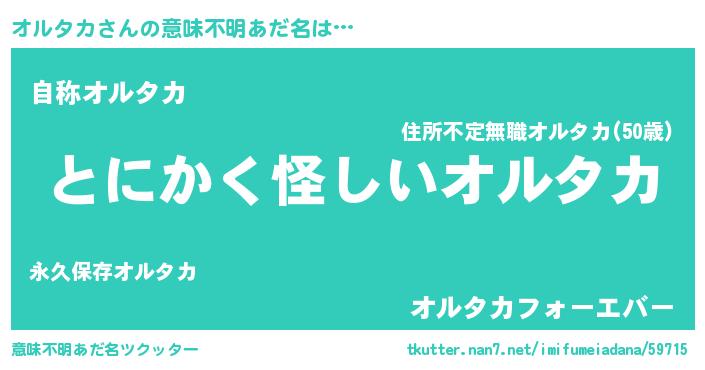 | ヒーロー風カッコイイあだ名 | 『黄金騎士オル』『超時空戦士オルタカ』 |