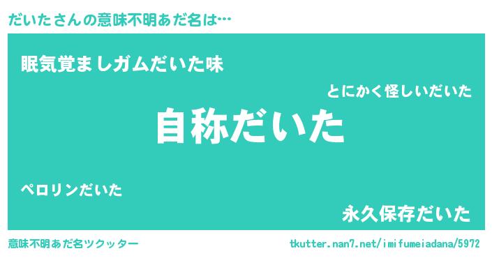 | ヒーロー風カッコイイあだ名 | 『最強戦士ダイタ』『正義の使者だいた』 |