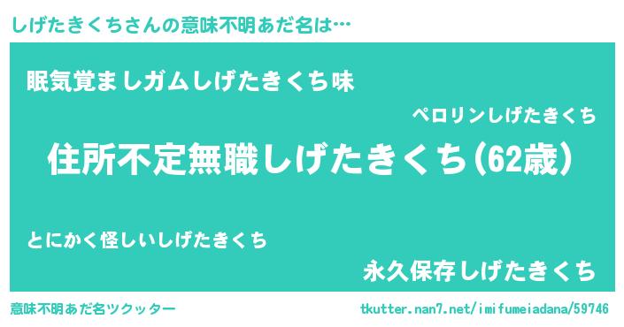 | 男性向けラノベタイトル風あだ名 | 『うちのしげたきくちが世界を掌握している!』 |