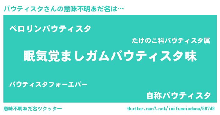 | 男性向けラノベタイトル風あだ名 | 『ノーゲーム・ノーバウティスタ』 |