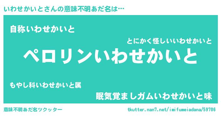 | 胡散臭い通販商品みたいなあだ名 | 『必ず成功するブレスレット…その名も「いわせかいと」』 |