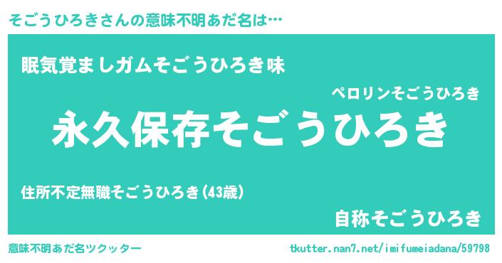 | 男性向けラノベタイトル風あだ名 | 『そごうひろきという概念が存在しない退屈な世界 』 |