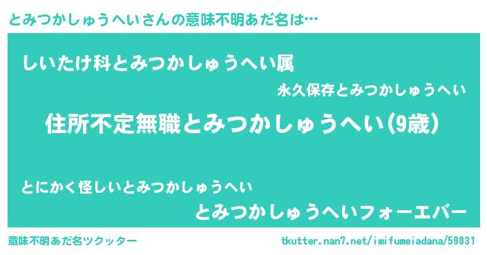 | 胡散臭い通販商品みたいなあだ名 | 『ハリウッド女優が絶賛した100年もののヴィンテージワイン…その名も「とみつかしゅうへい」』 |