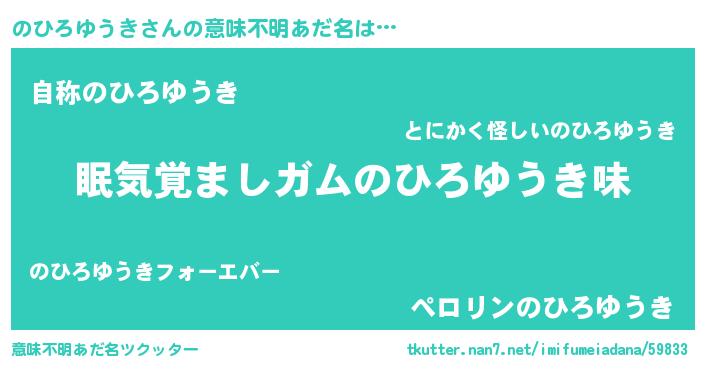 | 欧米人風あだ名 | 『のひろゆうき・ステッグマイヤー』 |
