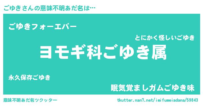 | 男性向けラノベタイトル風あだ名 | 『うちのごゆきが世界を掌握している!』 |