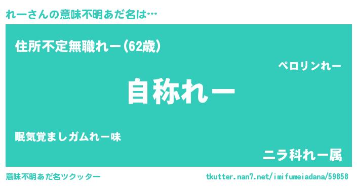 | 男性向けラノベタイトル風あだ名 | 『れーに滅ぼされるだけの簡単なお仕事です』 |