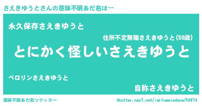 | ヘコむあだ名 | 『さえぷりん』『さえきゆうと(爆)』 |