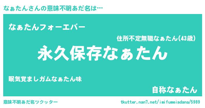 | 男性向けラノベタイトル風あだ名 | 『なぁたんという概念が存在しない退屈な世界 』 |