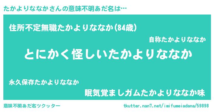 | ヘコむあだ名 | 『たか太郎』『たかよりななか(震え声)』 |