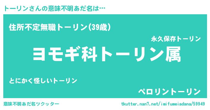 | ヒーロー風カッコイイあだ名 | 『仮面トーダー』『スーパートーリン』 |