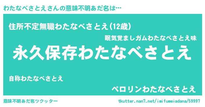 | ヘコむあだ名 | 『わたなべさとえ(笑)』『わたふぇ~』 |