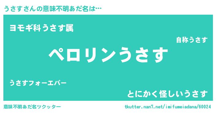 | ポケモン風あだ名 | 『ウサゴンZ』『ウサチュウ』 |