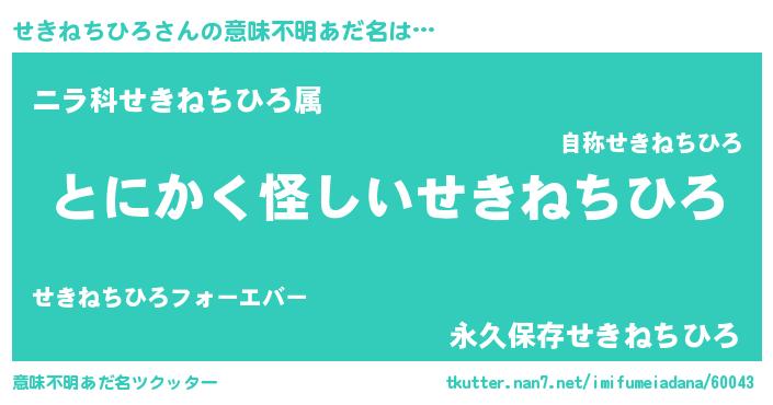 | ヘコむあだ名 | 『せきを』『せきねちひろ(小並感)』 |