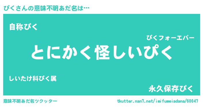 | 男性向けラノベタイトル風あだ名 | 『ぴくの嫁は女の子じゃないと思った?』 |