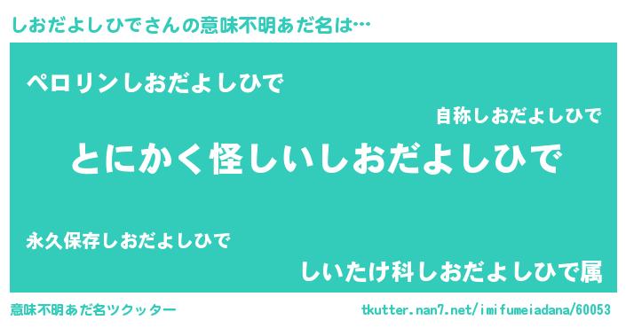 | 欧米人風あだ名 | 『ウサインしおだよしひで』 |