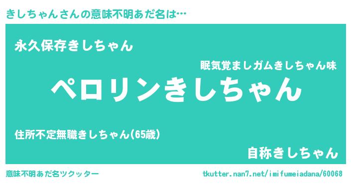| 男性向けラノベタイトル風あだ名 | 『キシチャンアートオンライン』 |