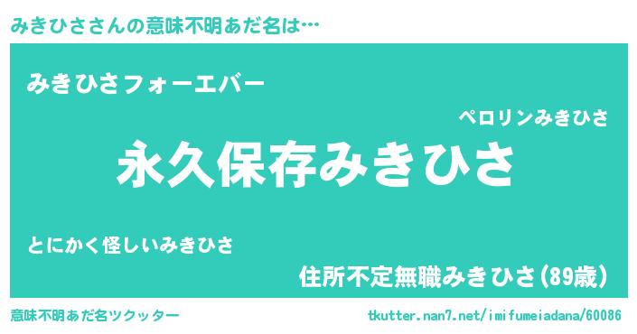 | 胡散臭い通販商品みたいなあだ名 | 『来世でも幸せになれる健康食品…その名も「みきひさ」』 |