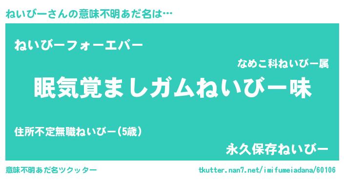 | 欧米人風あだ名 | 『ダニエルねいびー』 |
