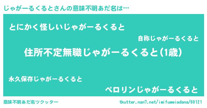 | 胡散臭い通販商品みたいなあだ名 | 『世界中を虜にした100年もののヴィンテージワイン…その名も「じゃがーるくると」』 |