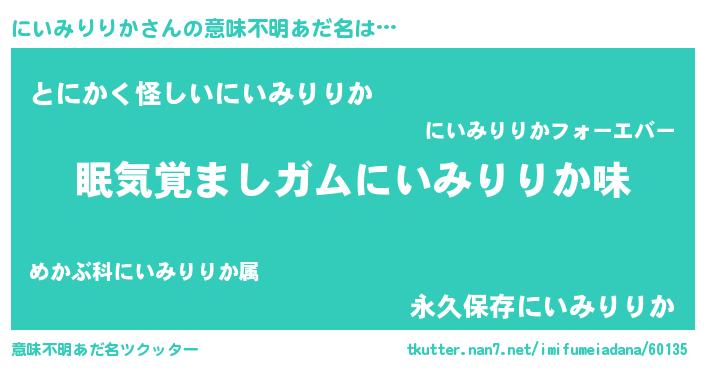 | 女子向けラノベタイトル風あだ名 | 『にいみりりか恋絵巻』 |