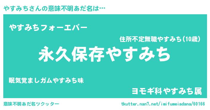 | ヘコむあだ名 | 『やすみち(小並感)』『なまこ酢』 |