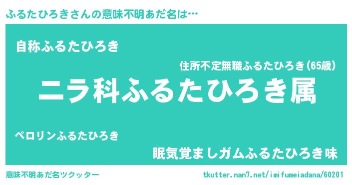 | 男性向けラノベタイトル風あだ名 | 『ふるたひろきに滅ぼされるだけの簡単なお仕事です』 |