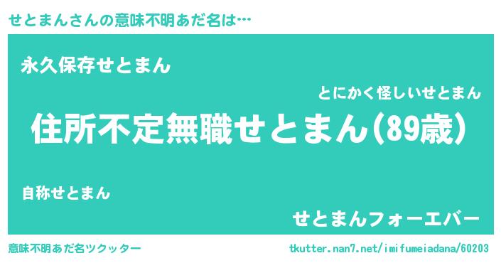| 伝説のあだ名 | 『古より伝わる勇者せとまん』 |