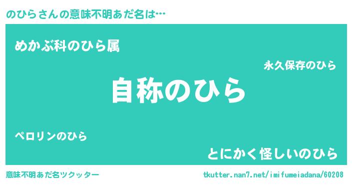 | ヘコむあだ名 | 『のひぷりん』『のひら(爆)』 |