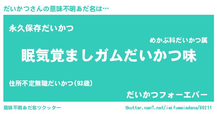 | ヘコむあだ名 | 『だいかつ(苦笑)』『牛乳』『だいを』 |