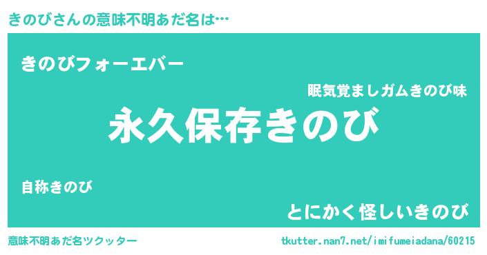 | 男性向けラノベタイトル風あだ名 | 『きのびという概念が存在しない退屈な世界 』 |