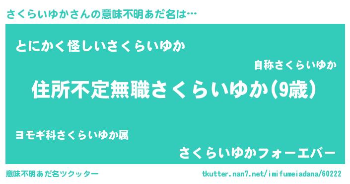 | 料理風あだ名 | 『さくらいゆかのカルパッチョ風』 |