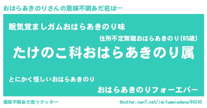 | 料理風あだ名 | 『おはらあきのりごはん』 |
