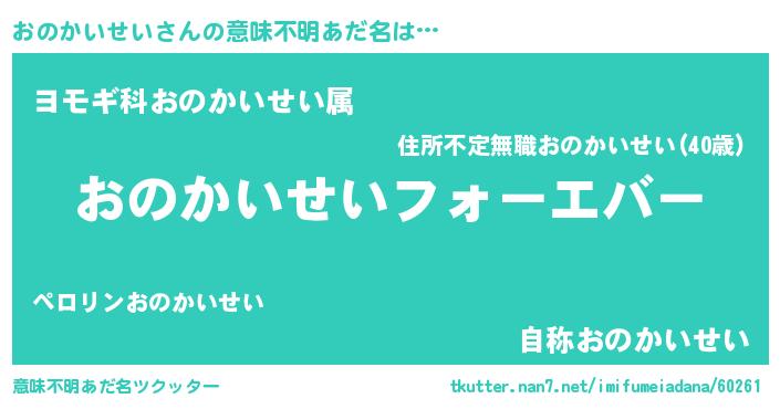 | ファンタジー風あだ名 | 『エターナルオノカイセイー』 |