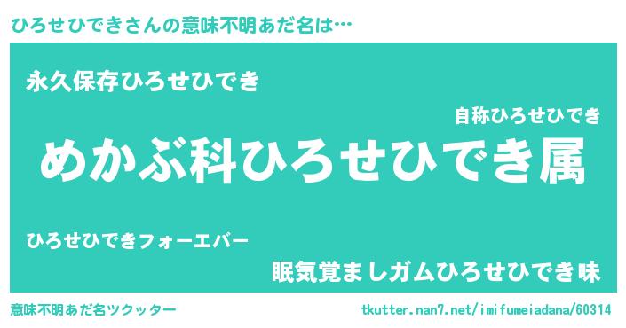 | ヘコむあだ名 | 『ひろせひでき(笑)』『つくし』 |
