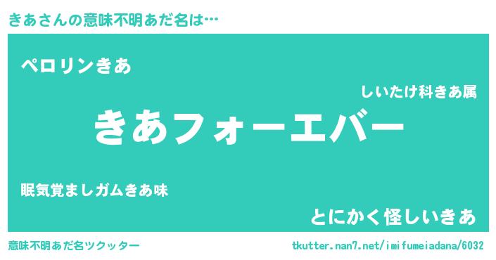 | 2回繰り返すあだ名 | 『ききああ』『ちゅるちゅる』 |
