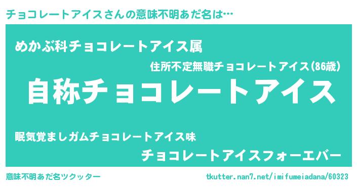| 料理風あだ名 | 『チョコレートアイスの炊き込みご飯』 |