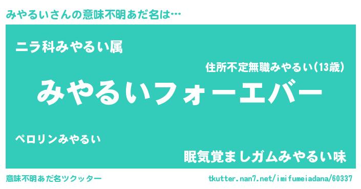 | ポケモン風あだ名 | 『メロミッヤ』『ミヤルダネ』 |