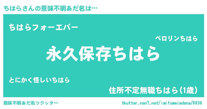 | 男性向けラノベタイトル風あだ名 | 『ちはらという概念が存在しない退屈な世界 』 |