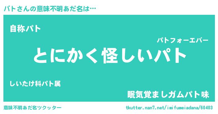 | ポケモン風あだ名 | 『ヒパト』『パトセウス』『パトダネ』 |