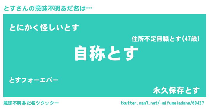 | 胡散臭い通販商品みたいなあだ名 | 『芸能人もオススメするアガリクス…その名も「とす」』 |