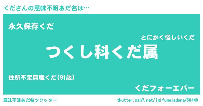 | 胡散臭い通販商品みたいなあだ名 | 『前代未聞の健康食品…その名も「くだ」』 |