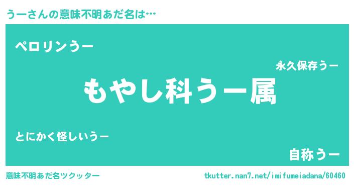 | 男性向けラノベタイトル風あだ名 | 『転生したらうーだった件』 |